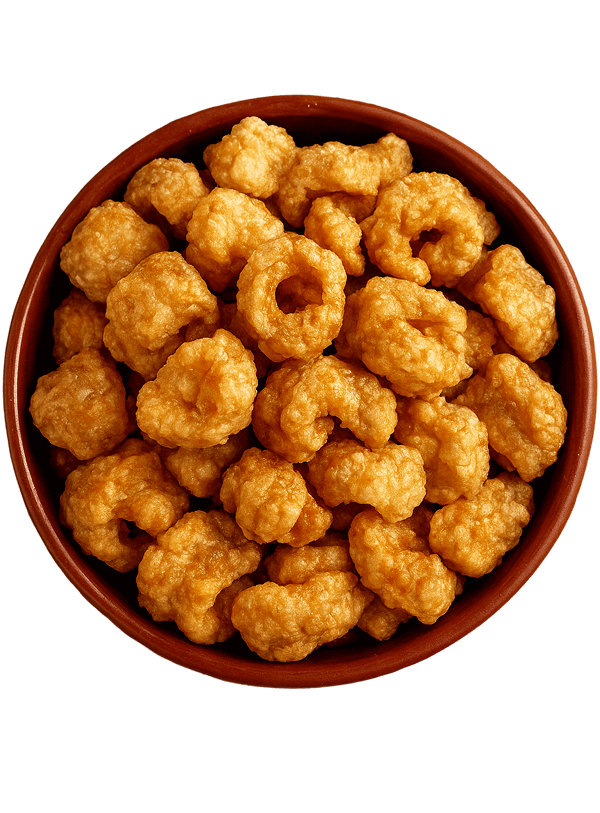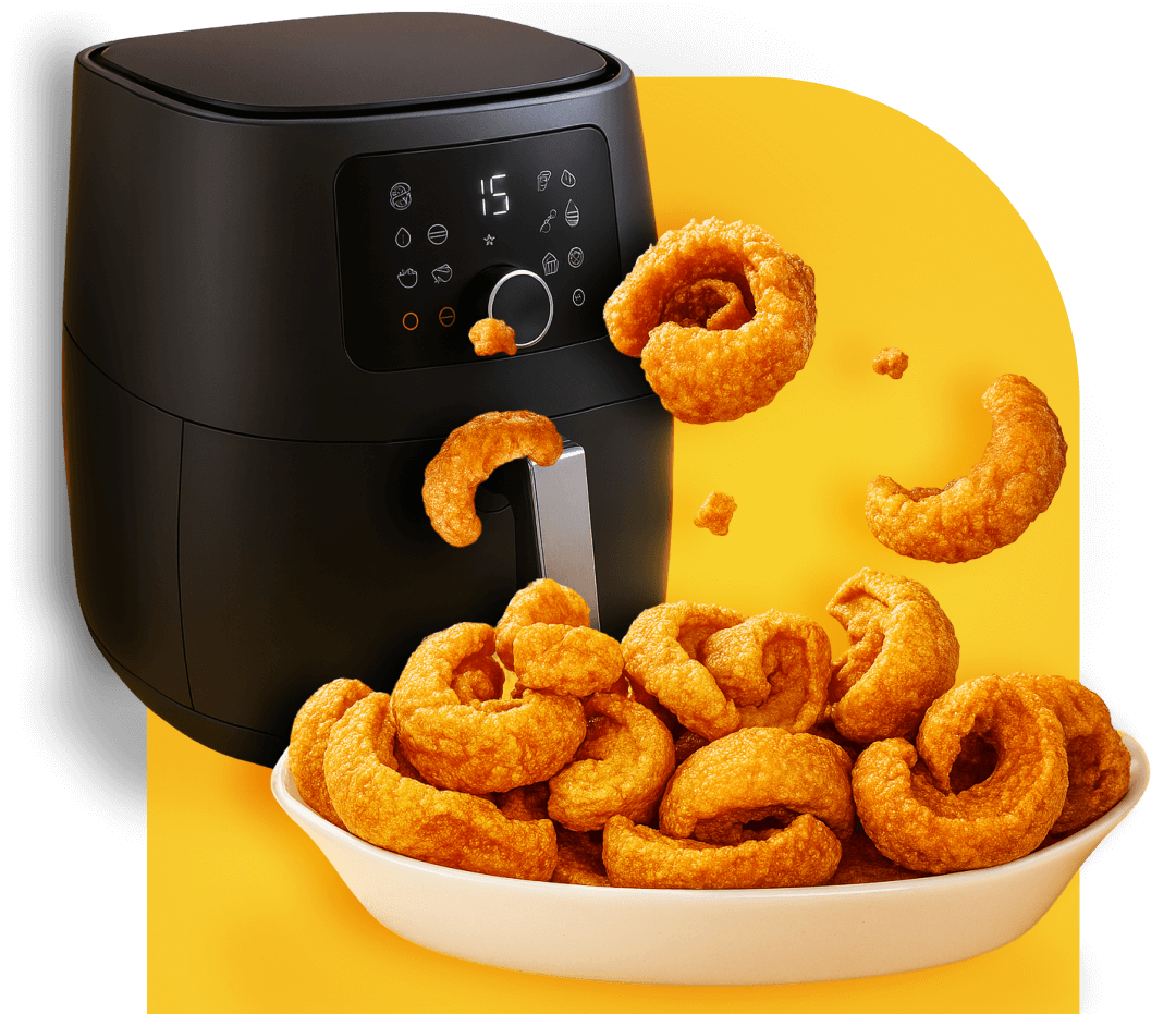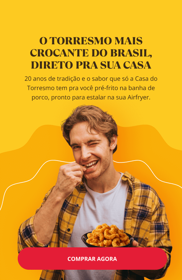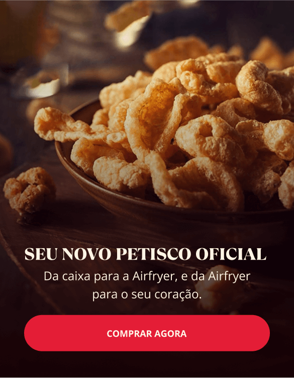 Fomos a primeira franquia de torresmo do Brasil e, há 20 anos, fazemos o petisco mais crocante do país. Agora, nosso torresmo pré-frito feito na banha de porco e com receita tradicional chega até você, pronto para estalar na sua Airfryer em poucos minutos.